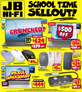 30% OFF^ $629 $270 OFF^ TICKET $899 512GB SSD RAM 8GB 15" Laptop 829793 / SDC1525585101MAURH CRUNCHED! $129 $20 OFF^ 1TB TICKET $149 1TB E30 Portable SSD Drive 626777 / SDSSDE30-1T00-G26 $95 $24 OFF^ TICKET $119 Vision Long-Life USB-C To 8-In-1 Multiport Hub 843217 / ELK-80152-R Starts Thursday 8/01/2026, Ends Wednesday 21/01/2026. See Page 47 For Conditions. ∙Battery life based on manufacturer testing and can vary significantly based on usage, network and feature configuration, signal strength, settings and other factors. ^Discounts apply to previous ticketed/advertised price prior to the discount offer at the time of printing 29/12/2025. As we negotiate, products will likely have been sold below ticketed/advertised price prior to the discount offer. Prices may differ at airport stores. $10EA TICKET $19 M196 Bluetooth Mouse 748318 / 910-007462(M196) Started 1/01/2026 $49EA LIGHTSYNC Gaming Mouse 440825 / 910-005790(G203) 512GB SSD BATTERY LIFE! UP TO 12.5HR RAM 24GB 14" Notebook 840501 / CK0R0PA#ABG Ends 31/01/2026 24GB RAM! PRICE SMASHED! $1799 $500 OFF^ TICKET $2299 BATTERY LIFE!• UP TO 11HR 1TB SSD RAM 32GB 14" Yoga 7 2-In-1 Notebook 789797 / 83DJ00BEAU Started 1/01/2026, Ends 14/01/2026. Available Online & Selected Stores Only. For Availability Visit jbhi.fi/789797 $500 OFF^ ENDS 14/1! $999 RED HOT DEAL!