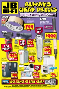 ALWAYS CHEAP PRICES AVAILABLE INSTORE & ONLINE! HUGE RANGE OF BABY GEAR! NEW! ON HEALTH, FITNESS, BEAUTY & BABY! 6 INTELLIGENT ATTACHMENTS! $999 Airwrap Co-anda2x™ Multi-Styler & Dryer (Ceramic Pink/Rose Gold) 817542 / 598756-01 $69EA 4 LITRE! 4 Litre Mini Beauty Fridge 883551 / HT-BX04 Makeup & Accessories Not Included NEW! Starts Thursday 12/02/2026, Ends Wednesday 25/02/2026. See Page 23 For Conditions. †See Page 6 For Details. *Always Read The Label & Follow The Directions For Use. ^Discounts apply to previous ticketed/advertised price prior to the discount offer at the time of printing 28/01/2026. As we negotiate, products will likely have been sold below ticketed/advertised price prior to the discount offer. Prices may differ at airport stores. $149 $150 OFF^ TICKET $299 Series 6 Wet & Dry Electric Shaver 590280 / 61-R1000S 1/2 PRICE!^ $249 $110 OFF^ TICKET $359 Superpower CC Cordless Hair Clipper 817072 / WA8513-012 $110 OFF^ $799 GOLD STRESS MONITOR Oura Ring 4† 808680 / JZ90-54216-08 Available Online & Selected Stores Only. For Availability Visit jbhi.fi/808680 $94 $55 OFF^ TICKET $149 6 MASSAGE ATTACHMENTS 6 INTENSITY LEVELS Physio Massage Gun 521942 / PGM-745-AU Started 5/02/2026, Ends 28/02/2026 $55 OFF^ $134 $45 OFF^ TICKET $179 Connect Wireless Upper Arm Blood Pressure Monitor* 405261 / WPM-05-AU Available Online & Selected Stores Only. For Availability Visit jbhi.fi/405261 $359 $90 OFF^ TICKET $449 E21 4K Baby Monitor 796113 / E8354C21 Phone Not Included $90 OFF^ $99 ENDS 25/2! RED HOT DEAL! MUSCLE MASS BMI Smart Scale C20 785377 / T9130T11