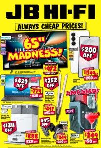 *Offer started 19/03/2026 until sold out. Discount is applied to the current ticketed price of ex-display models (as marked) instore only. Offer not available online. Availability instore limited and subject to change, check online and call your local store to check availability. Your local store will not be able to access ex-display stock from another location. Ex-display models are in working order but have been displayed and used instore for demonstration for significant periods. May have considerable screen time, cosmetic damage, missing stands, legs and product manual, and be sold with a 3rd party remote control. May not come with original packaging or parts. Delivery & install costs may be required for some screen sizes and models. 2025 EX-DISPLAY TV CLEARANCE INSTORE ONLY! THE CURRENT TICKETED PRICE OF SAMSUNG EX-DISPLAY TVS TAKE AN EXTRA CHECK OUT THE RANGE AT YOUR LOCAL STORE! 30%OFF* LOOK FOR THIS TICKET! 2025 EX-DISPLAY TV CLEARANCE! THE CURRENT TICKETED PRICE OF SAMSUNG EX-DISPLAY TVS TAKE AN EXTRA 30%OFF* SINGLE UNITS ONLY! UNTIL SOLD OUT! INSTORE ONLY! STOCKS VARY BY STORE! DISPLAY UNITS ONLY! PRICES SMASHED ON TVs! Not all models on display or stocked in all stores. To check availability at your local store, please view the product on our website. TVs not on display at Airport stores, Parkmore & Richmond Victoria Gardens. $5821 TICKET $6324 $503 OFF^ OLED 200 MOTION RATE 83" OLED 4K Smart AI TV • NQ4 AI Gen3 Processor • Motion Xcelerator 144Hz 804842 / QA83S90FAEXXY $2461 OLED 200 MOTION RATE 65" 4K Smart AI OLED TV • NQ4 AI Gen3 Processor • Motion Xcelerator 144Hz 804840 / QA65S90FAEXXY $1952 LED MINI NEO QLED 200 SMOOTH MOTION 65" 4K Neo QLED Smart AI Mini LED TV • NQ4 AI Gen2 Processor • Dolby Atmos 804829 / QA65QN85FAWXXY $1495 TICKET $1744 $249 OFF^ LED MINI NEO QLED 200 MOTION RATE 65" 4K Neo QLED Smart AI Mini LED TV • NQ4 AI Gen2 Processor • Quantum Matrix Technology 804824 / QA65QN70FAWXXY $1761 OLED 200 MOTION RATE 55" 4K Smart AI OLED TV • NQ4 AI Gen2 Processor • Exceptional Detail Unveiled 804833 / QA55S85FAEXXY $781 TICKET $895 $111 OFF^ 55" 4K Crystal Smart LED TV • Crystal Processor 4K • MetalStream Design 804806 / UA55U8500FWXXY $897 CLEARANCE! Q-Series 9.1.4 Channel Soundbar With Dolby Atmos 807931 / HW-Q930F/XY While Stocks Last. For Availability Visit jbhi.fi/807931 THAT'S NUTS! $1399 CLEARANCE! Q-Series 11.1.4 Channel Soundbar With Subwoofer & Rear Speaker 807932 / HW-Q990F/XY While Stocks Last. For Availability. Visit jbhi.fi/807932 #Free local delivery, table top set-up & connect offer is available on LG 2026 55" & above OLED TVs & 98" & above TVs only. Offer not available for online purchases or in some regional areas. Excludes wall mount installation, audio component installation and old TV removal. Additional charges may apply for installation locations beyond 25KM of the store/stock pick up location. For full terms & conditions visit jbhifi.com.au/delivery. Excludes Blaupunkt TV. ^Discounts apply to previous ticketed/advertised price prior to the discount offer at the time of printing 2/04/2026. As we negotiate, products will likely have been sold below ticketed/advertised price prior to the discount offer. Prices may differ at airport stores. $5477 TICKET $6223 $746 OFF^ LED MINI NEO QLED 200 MOTION RATE 100" 4K Neo QLED Smart Mini LED TV • NQ4 AI Gen2 Processor • Dolby Atmos 804827 / QA100QN80FWXXY Ends 22/04/2026 #FREE DELIVERY SET-UP & CONNECT! ENDS 22/4! $3444 TICKET $4995 $1551 OFF^ 200 MOTION RATE 98" 4K Crystal Smart LED TV • Vibrant & Lifelike Picture • Tizen Smart Hub 722006 / UA98DU9000WXXY MONSTER 98'' CRUNCHED! # FREE DELIVERY SET-UP & CONNECT! CLEARANCE! CLEARANCE! CLEARANCE! CLEARANCE! CLEARANCE! CLEARANCE! CLEARANCE! CLEARANCE! 4